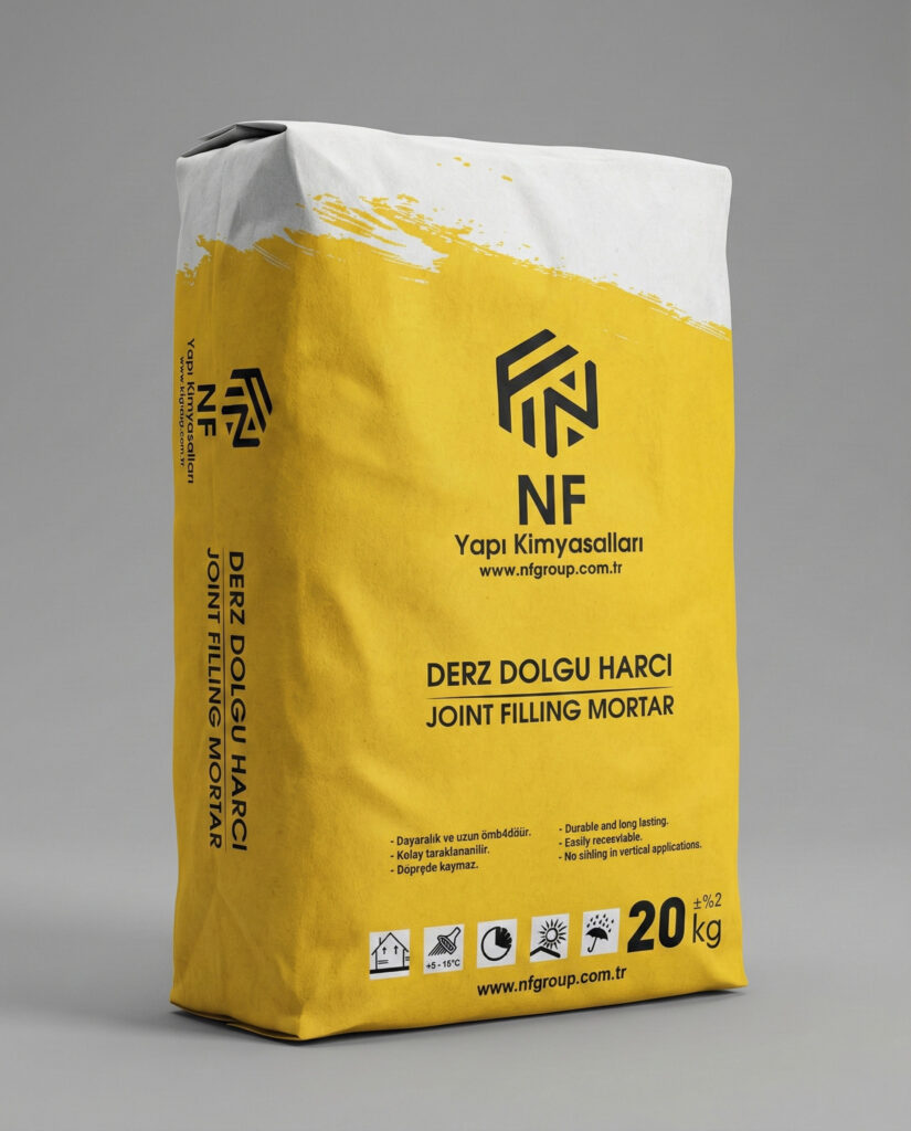 KARIŞIM : 20 kg’lık NF Derz Dolgu Harcı, yaklaşık 6 - 7 litre temiz su içerisine yavaşça boşaltılmalı ve düşük devirli bir mikser veya mala ile topak kalmayacak şekilde karıştırılmalıdır. Harç, 5-10 dakika dinlendirilmeli ve uygulamadan önce 1-2 dakika tekrar karıştırılmalıdır.